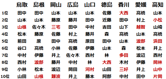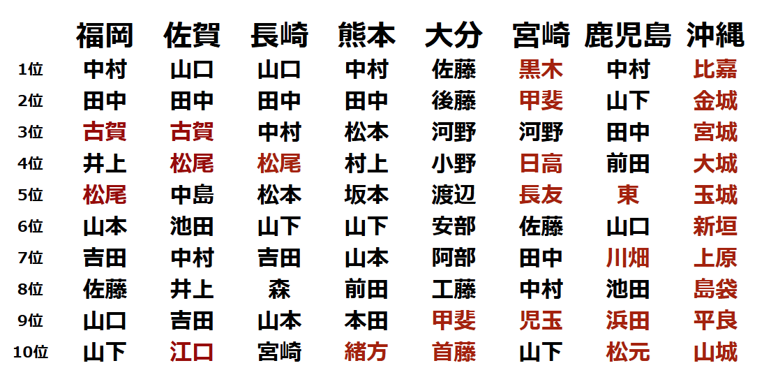 地域だけで多く見られる名字ちゃう